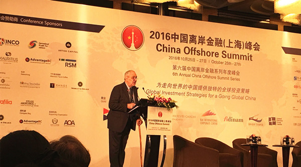 英属维尔京群岛(BVI)总理Orlando Smith博士在本届峰会上的发言,总理表示:“我很高兴第一次来到宏伟壮观的上海,并参加主题为《中国‘走出去’方针下的全球投资战略》的中国离岸年度金融峰会。英属维尔京群岛在过去的几年里一直是中国离岸系列峰会的合作伙伴之一,这是一个非常重要的论坛,我们能在论坛上和上海乃至中国的商界人士建立重要和长远的关系。”
