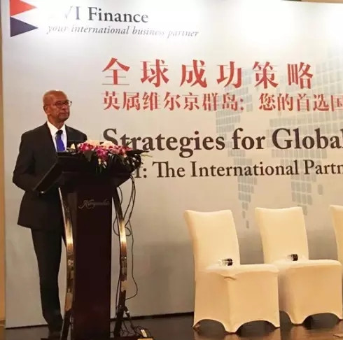 英属维尔京群岛总理Orlando Smith博士发表演讲