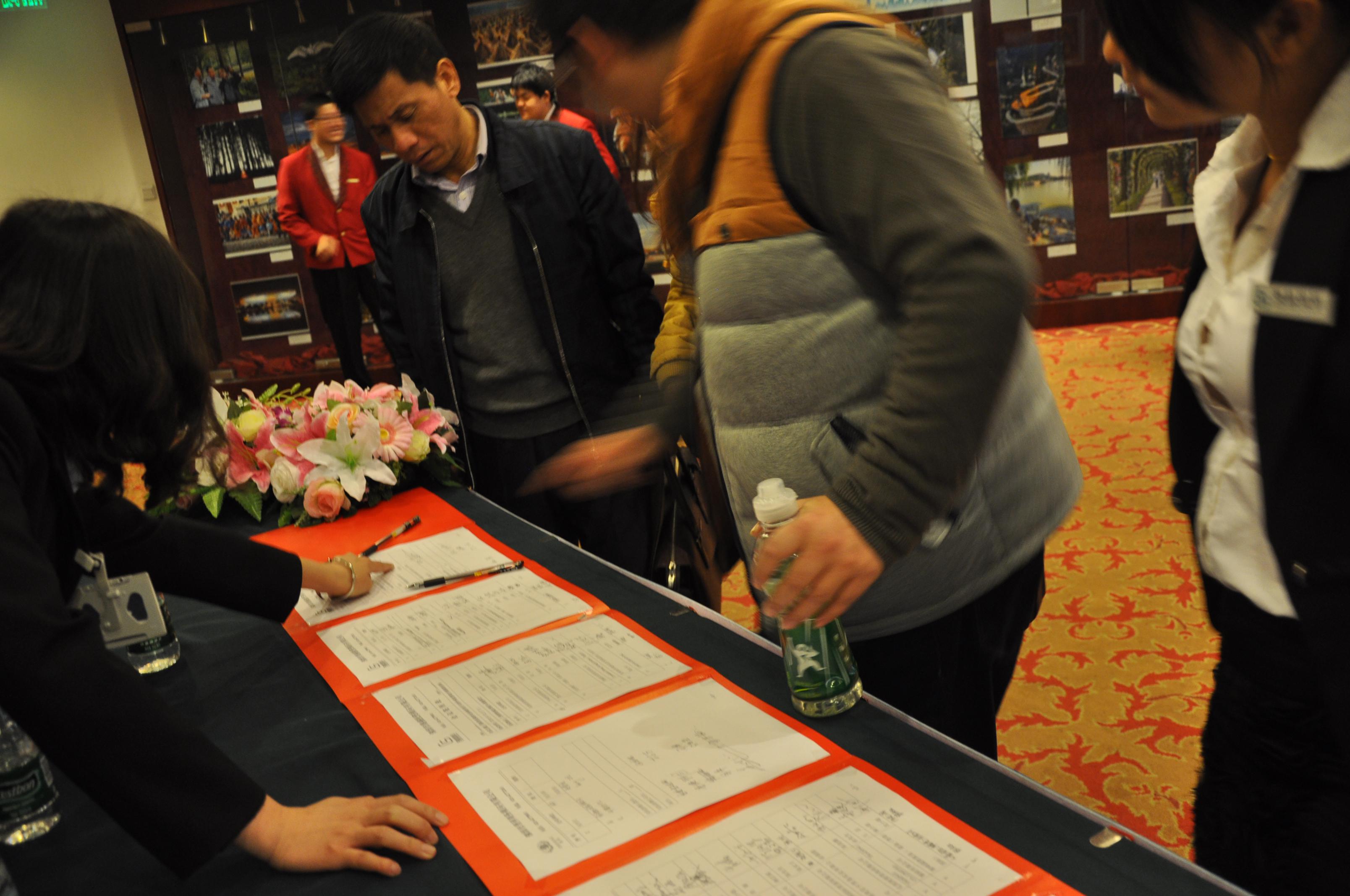 本次讲座活动规模恢宏及盛大,到场的企业家、投资管理精英以及成功投资者们多达上百位,而现场讲座时间也于2013年12月7上午8点半正式开始。(下图为客户陆续前来签到并领取培训手册资料进入会场)。