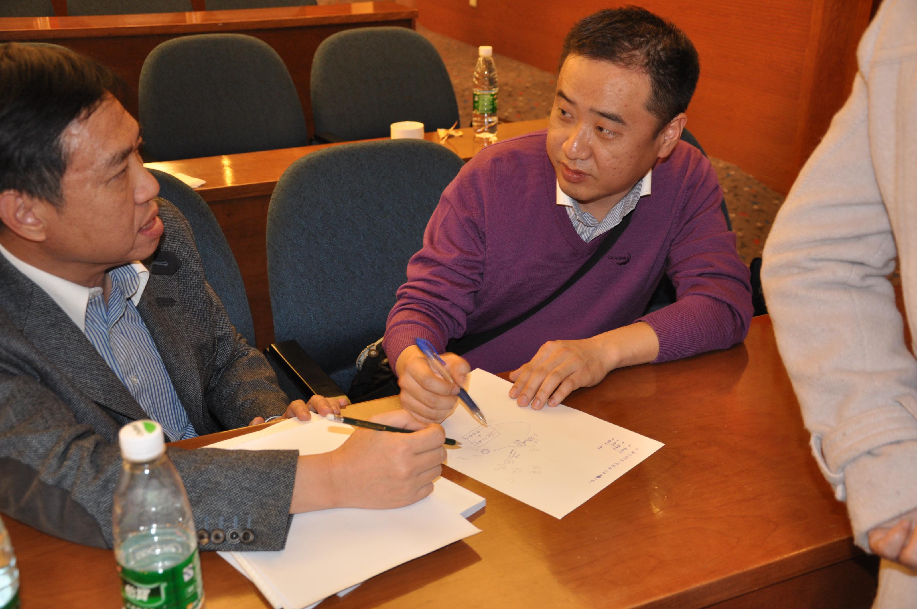 一上午时间,大家对陈老师丰富的演讲为之动容,时而低头深思、时而伴随着笑声,而课程也在这欢快的气氛当中过去了一大半,而在会场休息时间过程当中,不少客户上台与陈老师进行询问和交流。(下图为客户进行咨询和陈老师解答)