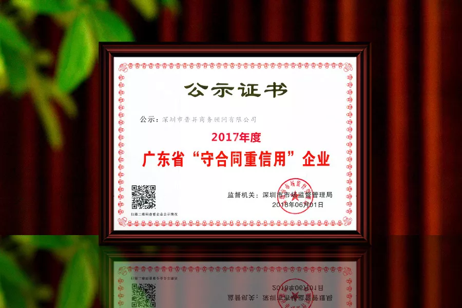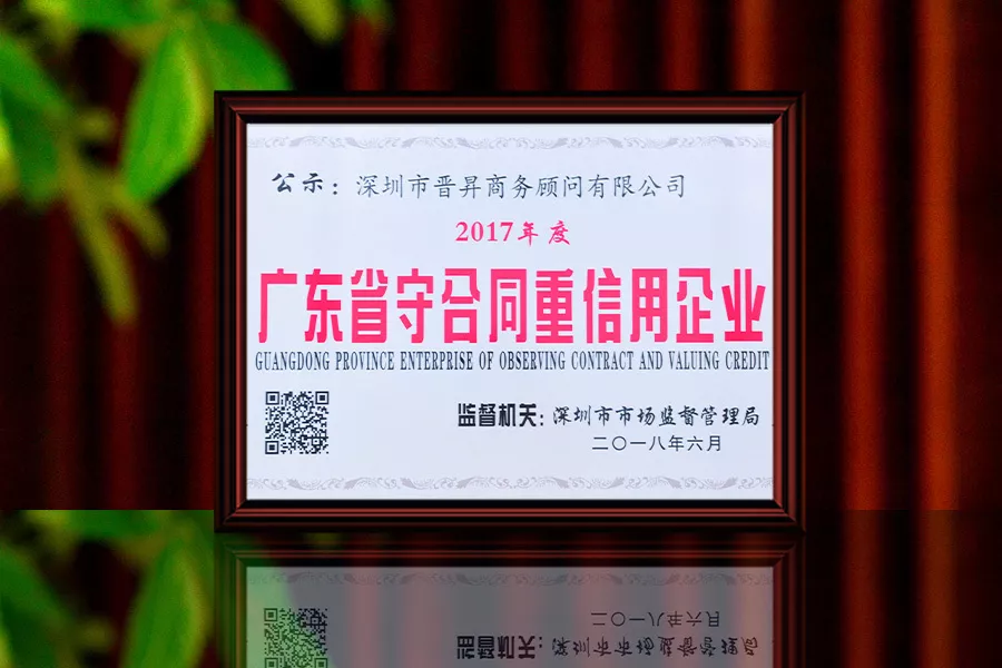 缤纷夏日,总有不断的惊喜到来。近期,深圳市市场监督管理局对2017年度广东省“守合同重信用”企业进行公示,晋昇国际荣获2017年度广东省“守合同重信用”企业,并获颁荣誉牌匾和荣誉证书。这是令人欣喜和鼓舞人心的时刻,晋昇国际团队将继续砥砺前行,为广大客户创造价值!
