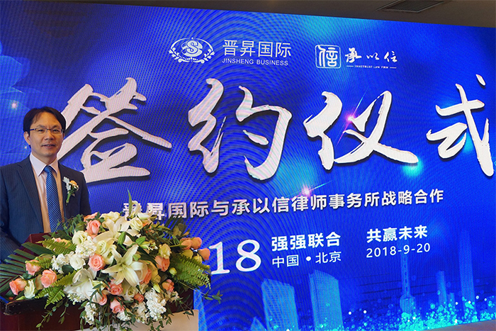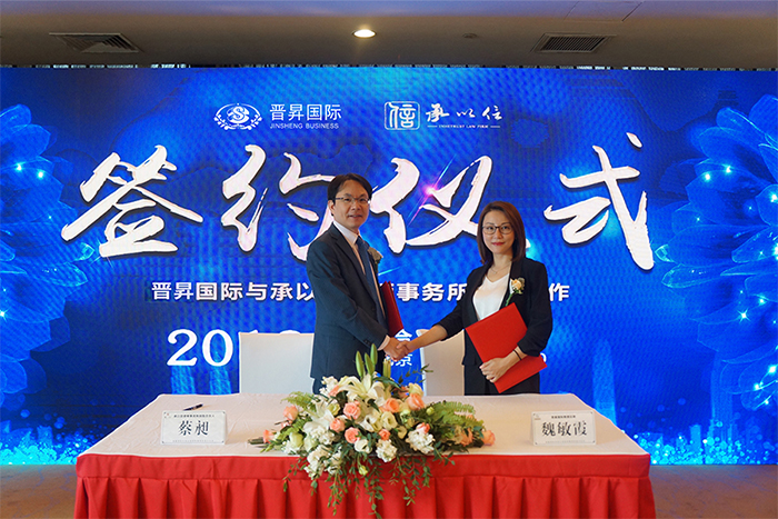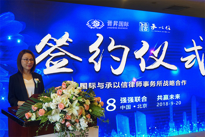 9月20日,晋昇国际与承以信律师事务所战略合作签约仪式在北京隆重举行。双方经过多次洽谈与沟通,就“境外离岸资产的税务风险防范与离岸财富管理”等服务理念形成共识,达成战略合作,并将携手打造一站式离岸财富管理平台。晋昇国际总裁魏敏霞、承以信律师事务所创始合伙人蔡昶、资深律师团队及众多嘉宾见证了此次签约。
