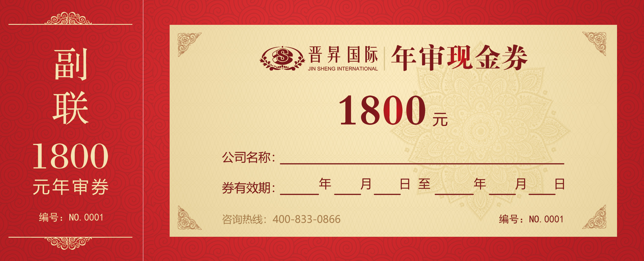 5、请妥善保管本现金券,届时凭券抵扣1800元年审费用,遗失不补;