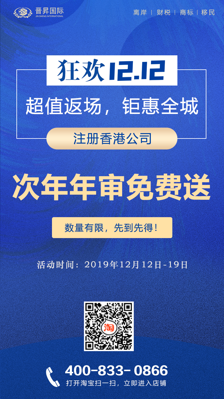 活动期间,凡原价注册中国香港公司,可免次年年审服务费。