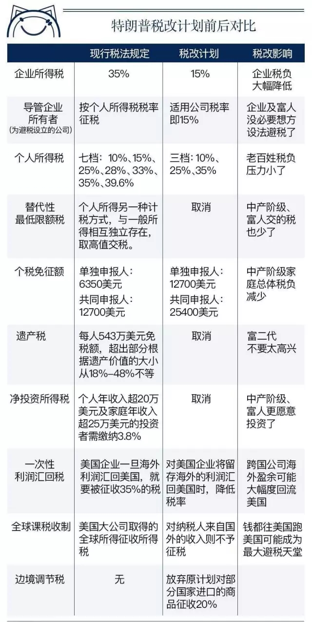 这次特朗普税改计划还有重磅的条款是,取消了资本利得税,这让美国的资本市场更有活力。比如,苹果公司账面上虽然有千亿美元现金,但更多现金和资产却留在国外不敢汇回来,特朗普税改之后,这下美国海外的企业会将留存海外的盈余汇回美国。这样以来,美国的资本市场将更有活力。