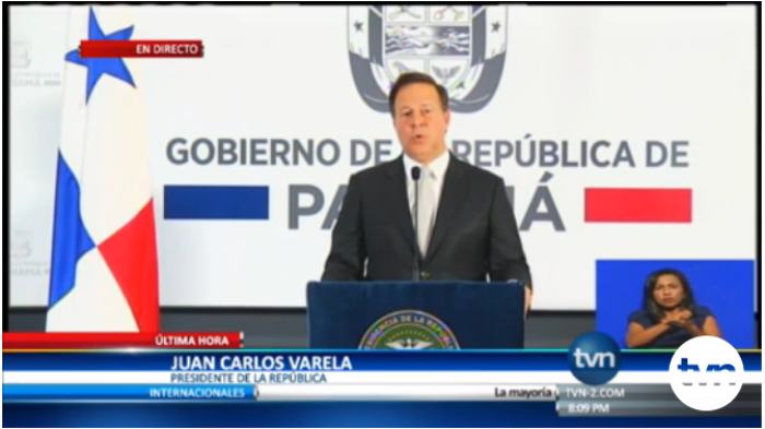 巴拿马时间6月12日晚8时,巴拿马总统胡安·卡洛斯·巴雷拉(Juan Carlos Varela Rodriguez),在国家电视台全国新闻联播节目上,正式向全世界宣布:巴拿马共和国与中华人民共和国建立外交关系。