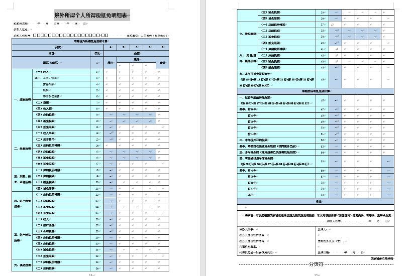 若您已就境外所得向境外税务局缴纳了个人所得税,可以通过填写《境外所得个人所得税抵免明细表》(如下图所示)抵免境内的应纳税额。但具体抵免额为多少,涉及复杂的计算和相关资料的审核提交,建议您可以咨询或委托专业服务机构——晋昇国际为您计算和代理申报。
