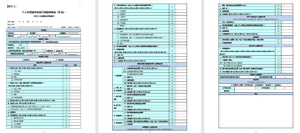 (4)《个人所得税年度自行纳税申报表(B表)》