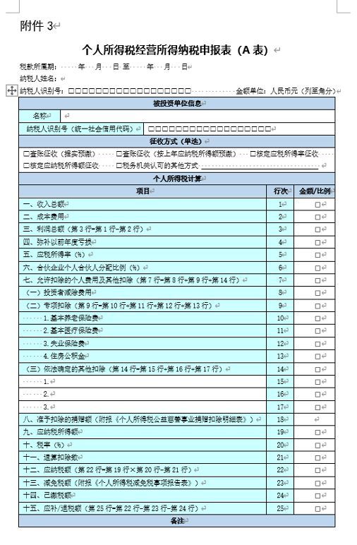 (5)《个人所得税经营所得纳税申报表(A表)》