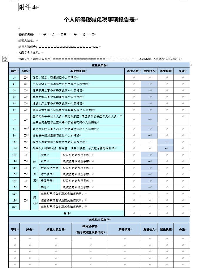 (6)《个人所得税减免税事项报告表》