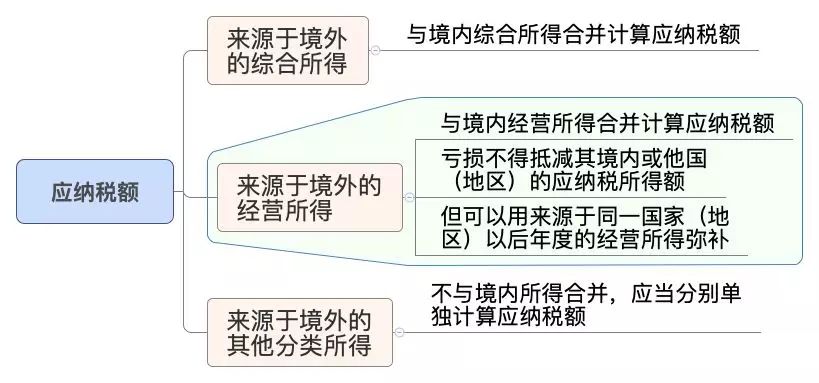 注:分类所得是比例税率,不用和境内所得合并,综合所得和经营所得是累进税率,应把境内外合并计算出一个整体的应纳税额。